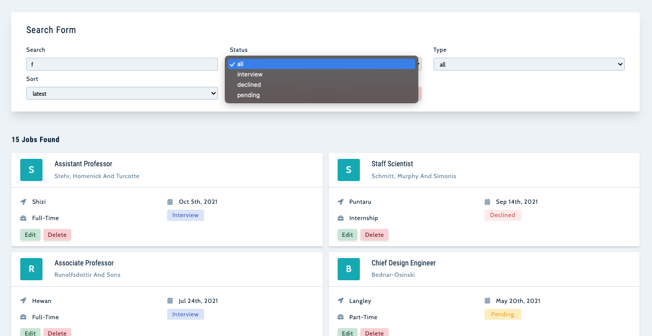 The website allows users to create a profile and add job applications to it. They can keep track of the status of each application and add notes and comments to each one. The site also allows you to search and sort jobs that you have applied for. It is built with modern web technologies to provide a seamless user experience.